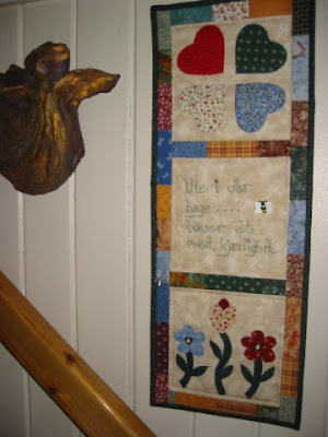 Quiltbildet fra din svigermor far fint, og jeg likte teksten på det ;-)